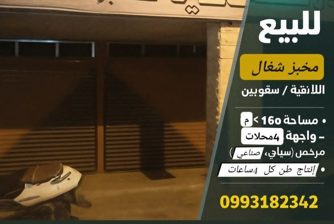 📣 للبيع – مخبز شغّال باللاذقية / سقوبين