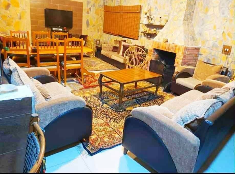 🟢 الشقة مؤلفة من ثلاث غرف نوم وصالة و حمامين و حديقة 100م