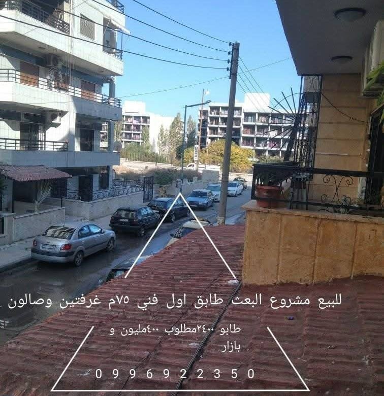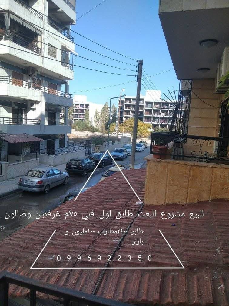 للبيع بمشروع البعث بناء حديث ملبس حجر طابق اول فني اتجاه قبلي شمالي تجهيز جيد غرفتين وصالون ناعم مساحه ٧٥م طابو ٢٤٠٠ سهم تسليم فوري مطلوب ٤٠٠مليون 0996922350