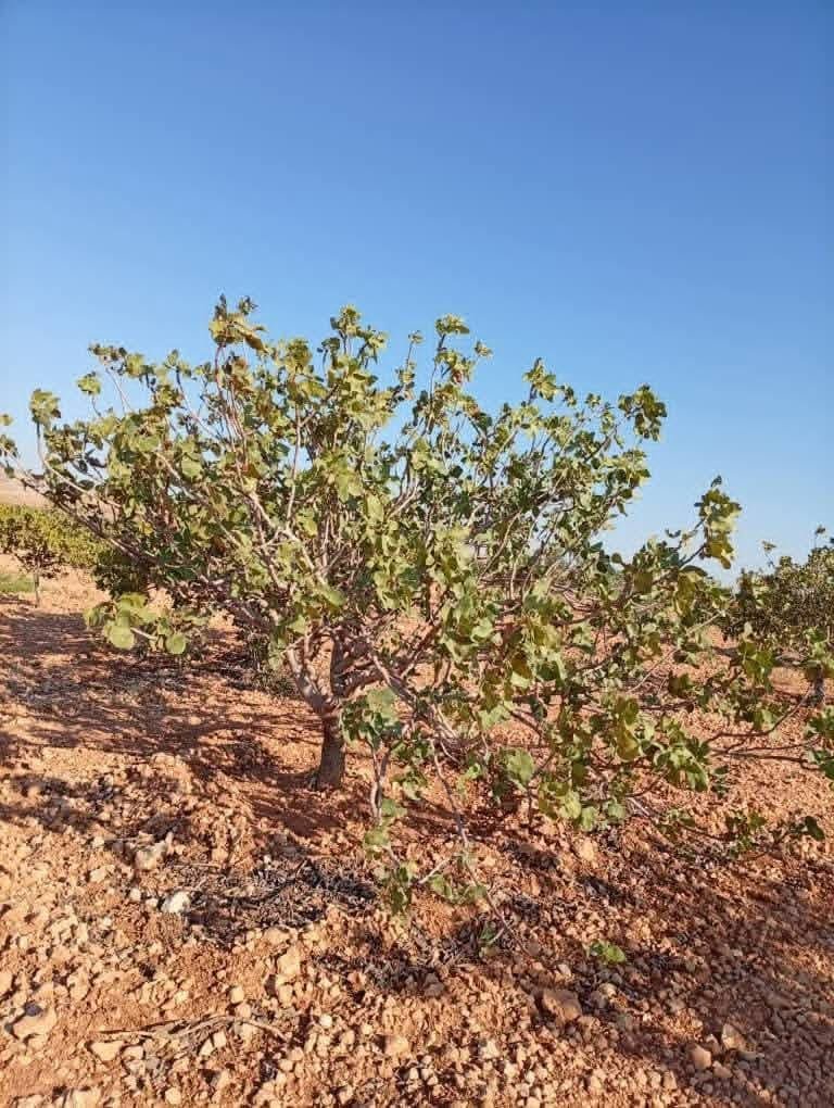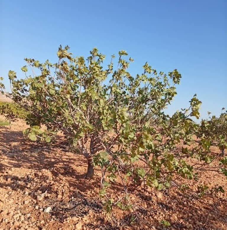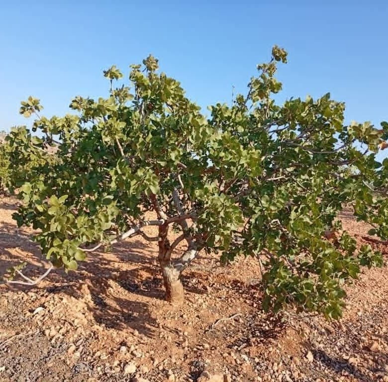 مشجرة 20دونم فستق حلبي العمر 30 سنة مع 20دونم زيتون نوع قيسي عمر الشجر 12سنة وباقي مساحة الأرض 30دونم سليخ محفورة جور باغر عدد 650 عمق الجورة متر ونصف جاهزة لمشروع فستق حلبي بالإضافة لوجود بئر مياه عدد 2