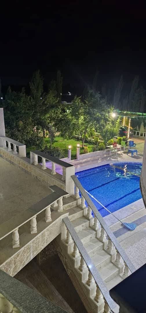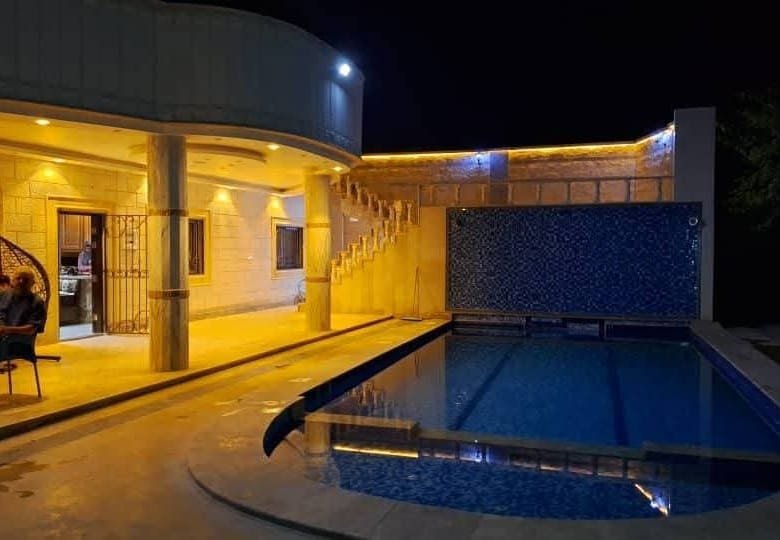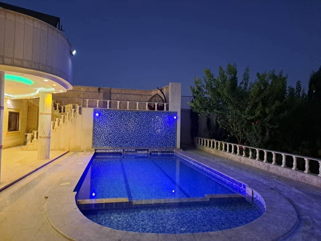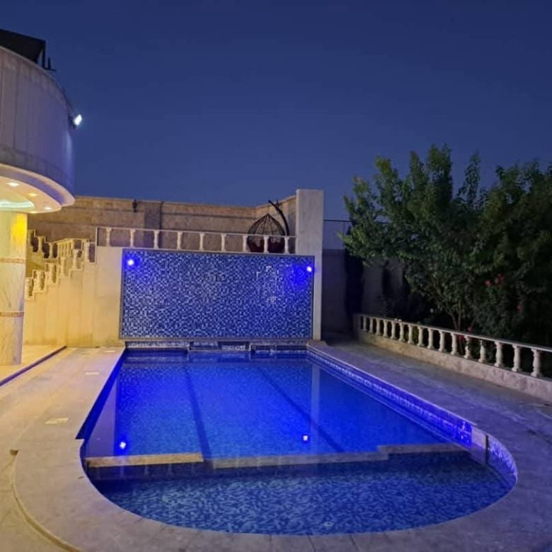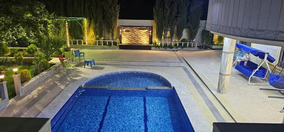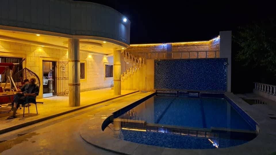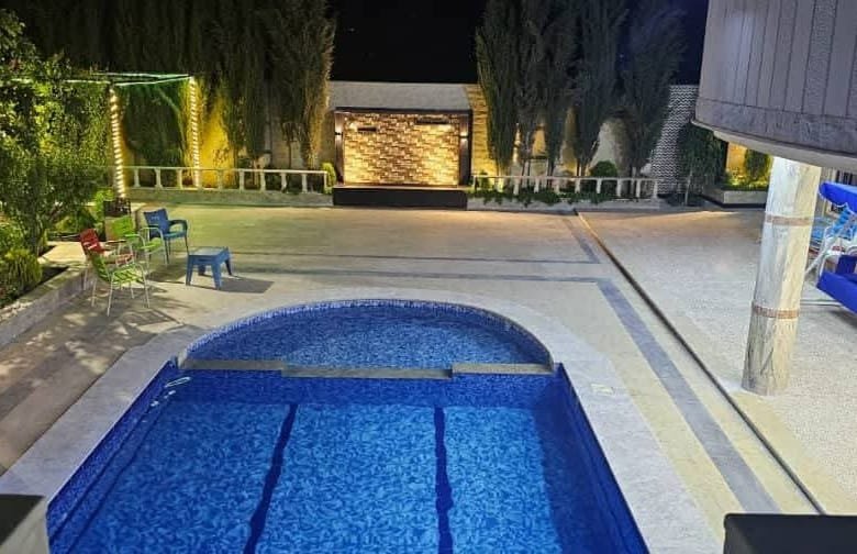 🟣 جلسات خارجية حول المسبح رائعة مع إضاءة ليليةممتازة 🟣 مسبح كبير + مسبح اطفال مفلتر ومعقم