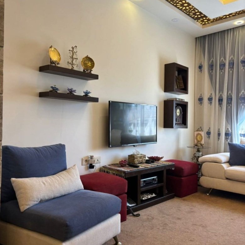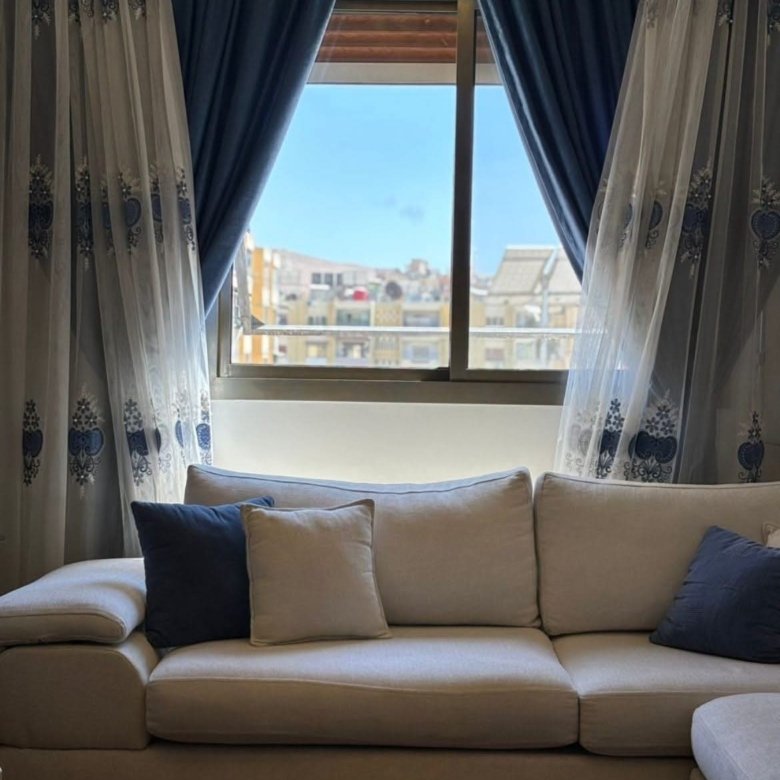 المساحة 120م عبارة عن 3غرف نوم منهم واحدة ماستر وصالون ومطبخ وحمام3 وبرنده2