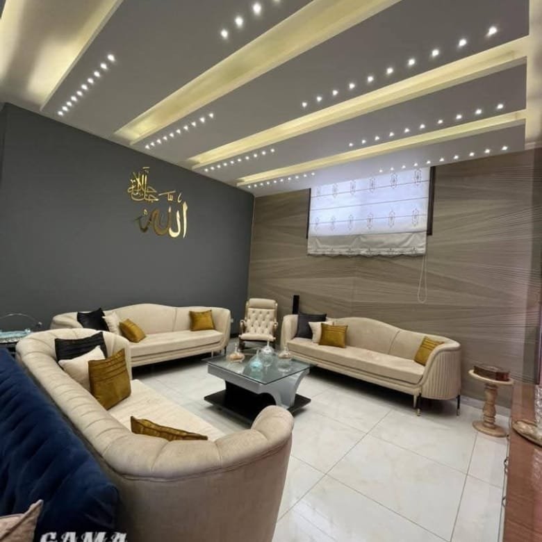 مساحة كلية 250متر عبارة عن 3غرف نوم منهم ماستر .. صالون 3مقاطع حرف L .. مطبخ .. غرفة سفرة .. حمام3 .. حديقة90م … إكساء و فرش سوبر ديلوكس طاقة بديلة كهرباء و ماء